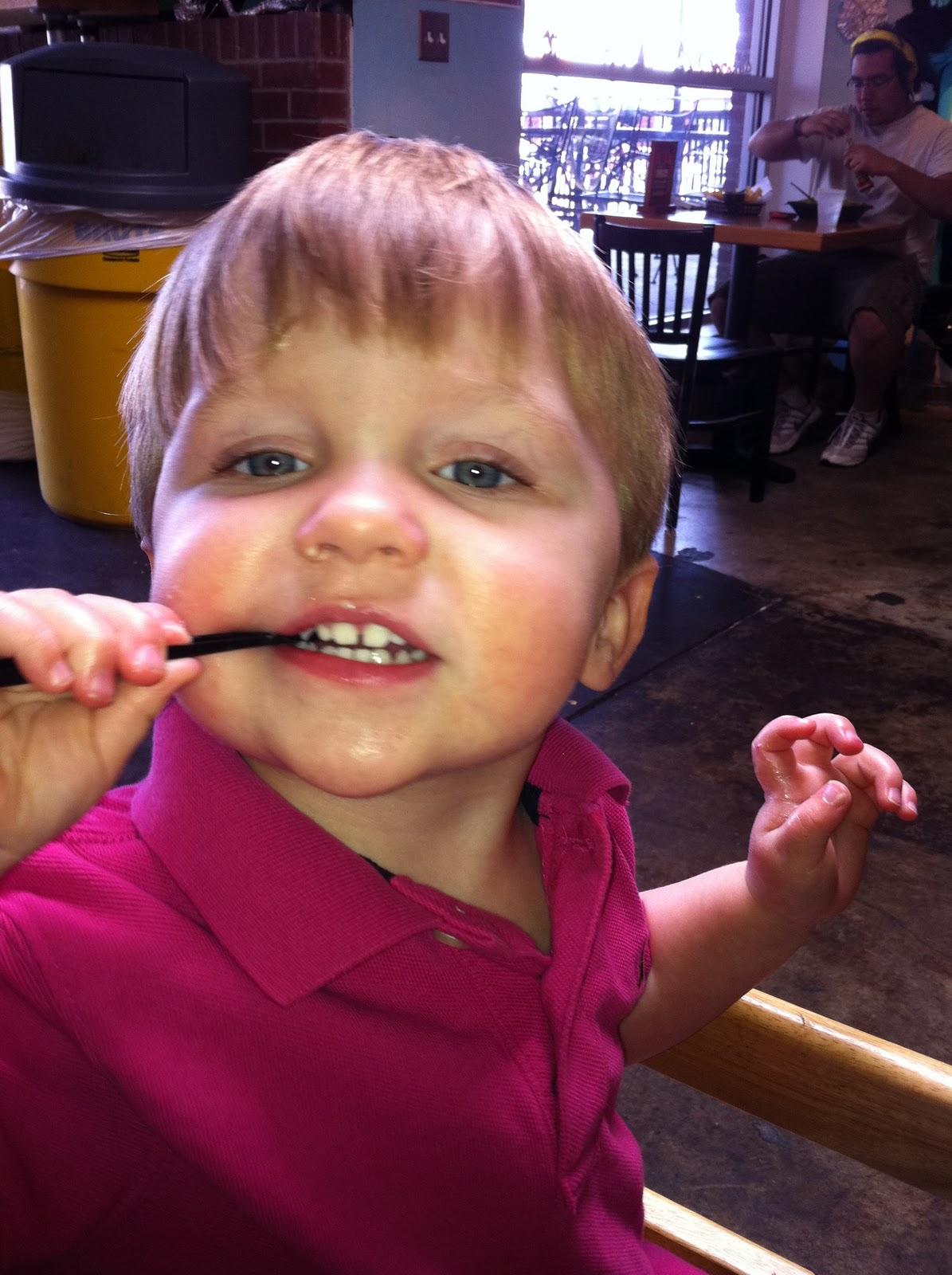 All in all it was a good time watching him! We went to lunch at Freebirds and he was digging feeding himself.
